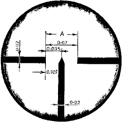 Как было упомянуто ранее, прицельный пенек по ширине закрывает в проекции на цель угол в 2 тысячных Горизонтальные нити закрывают углы по своей толщине также на 2 тысячных База прицела А - расстояние между нитями - закрывает 7 тысячных