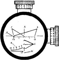 Е- цифры на дальномерной шкале 2, 4, 6, 8, 10 соответствуют расстояниям 200, 400, 600, 800 и 1000 м,