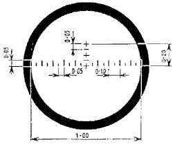 От малой риски до большой риски (малые дистанции) накрывается угол 0,05 (пять тысячных);