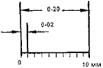 Г - от центра (основного угольника) вправо-влево до цифры 10 соответствует 0,10 (десять тысячных) Высота крайней вертикальной риски у цифры 10 равна 0,02 (две тысячных);