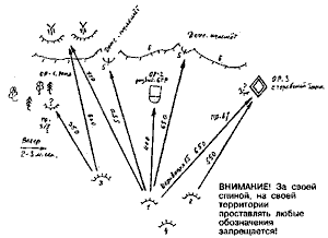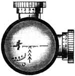 Пример. Пехотинец в полный рост полностью помещается под цифрой 4. Следовательно, дистанция равна 400 метрам (схема 65).