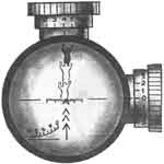 Следовательно, если цель (пехотинец) поместилась в два отрезка шкалы прицела ПСО-1, расстояние до нее 250, если в одном отрезке - 500 м, в половине отрезка - 1000 м.