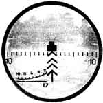 При отклонении линии прицеливания оптического прицела от центра белого круга необходимо вращением барабанчиков совместить ее с центром круга, не изменяя положения наводки по открытому прицелу. После этого шкалу дистанций надо поставить против указателя делением "3", а шкалу боковых поправок - делением "0".
