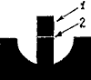Возникает еще вопрос: почему нельзя с самого начала поставить прицел на "1" и сразу пристреливаться по центру мишени на 100 метров дистанции. Ответ: черная мушка будет сливаться с черным квадратом, и вы никогда не "нащупаете" мушкой центр мишени. А небольшую точечную, пусть даже яркую, цель "взять" в открытый прицел намного труднее, чем прицелиться прямоугольной мушкой с просветом под обрез пристрелочного квадрата, который в реальной прицельной проекции одинаков с мушкой (схема 98). Небольшой "просветик" между мушкой и нижним срезом квадрата (2 на схеме 98) поможет контролировать их взаимное положение и не позволит "врезаться" черной мушкой в черный квадрат. Кучность стрельбы по пристрелочному квадрату по этим причинам всегда будет лучше, чем при стрельбе по другим целям. Это замечено практикой.