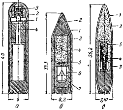 а - пуля дистанционная (Германия); б - пуля ударная (Германия); в - пуля ударная (Испания)