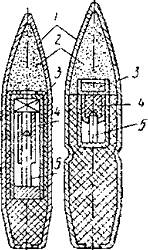 1 - оболочка; 2 - взрывчатое вещество;